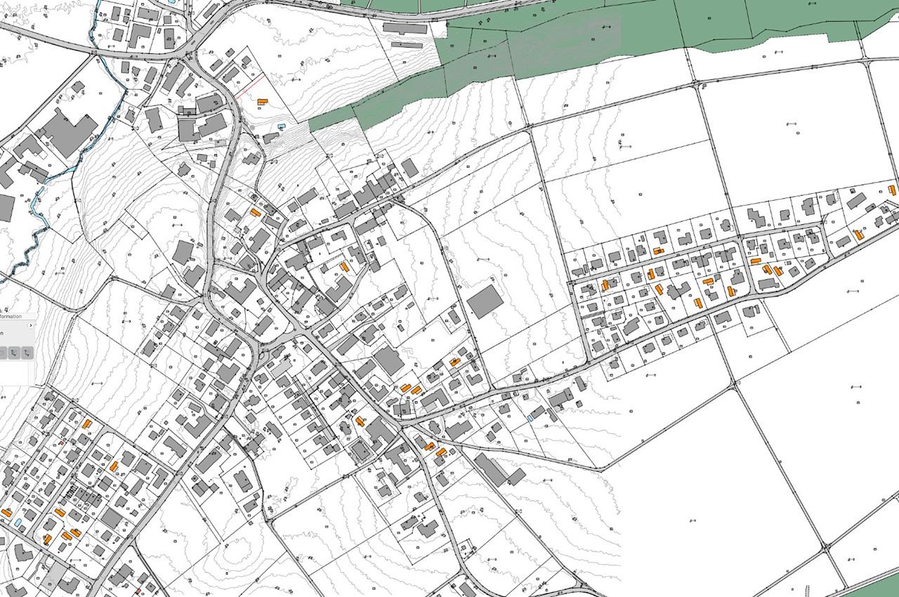 Anhand der beiden Ortspläne mit den orange eingezeichneten «Tiny»-Häusern, möchten wir Ihnen zeigen, wie gross das vorhandene Potenzial und wie klein der Platzbedarf für ein Holzkubus ist. Vielleicht dürfen wir schon bald auch auf Ihrem Grundstück eines unserer modernen Stöckli planen?