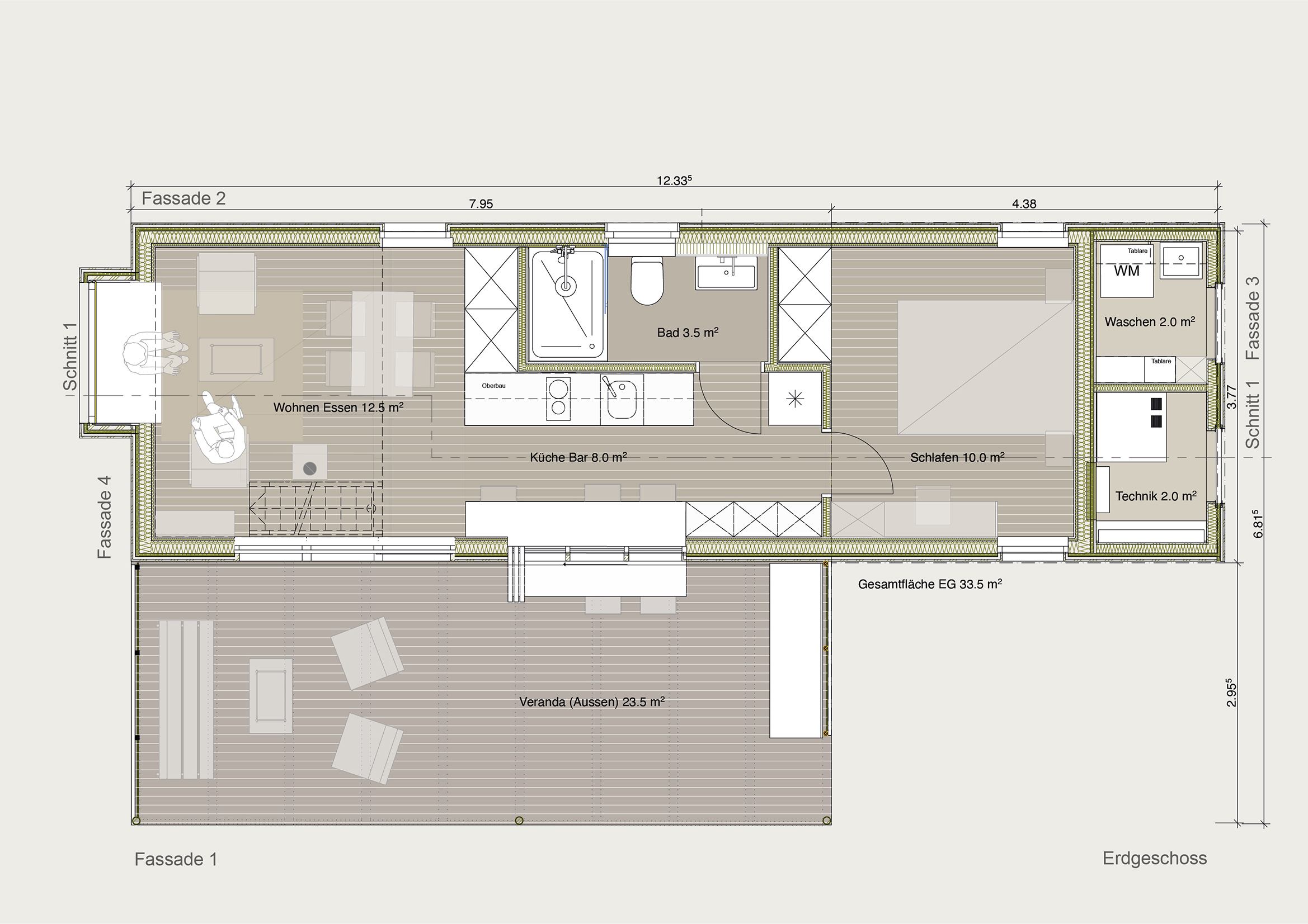 Dieser Kubus ist ideal für 1 bis 2 Personen, welche trotz minimaler Fläche nicht auf Qualität und gutes Design verzichten möchten.